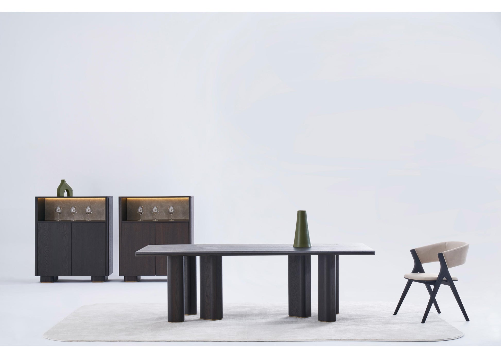 Ein Sideboard mit klarer Komposition, das Ordnung und Struktur in den Raum bringt.