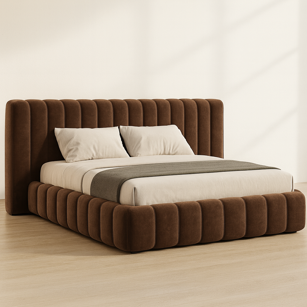 Ein Bett mit klarer Silhouette und feinem Gleichgewicht zwischen Form und Funktion. Für Räume mit ruhiger Ausstrahlung.