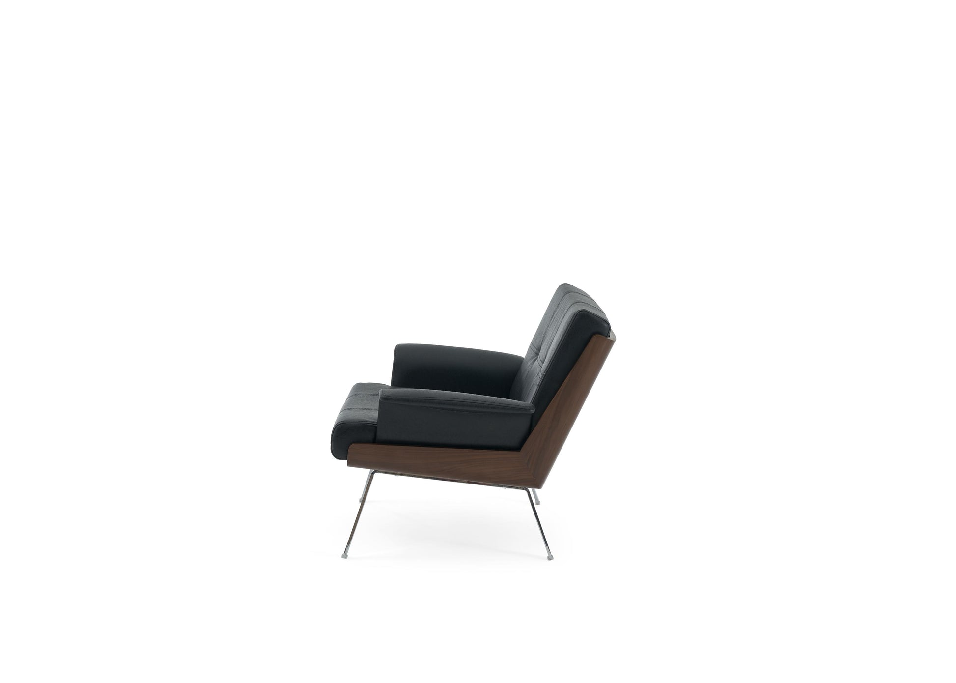 Ein Sitzmöbel mit ausgewogener Geometrie. Er steht für Komfort, Ruhe und architektonische Klarheit.