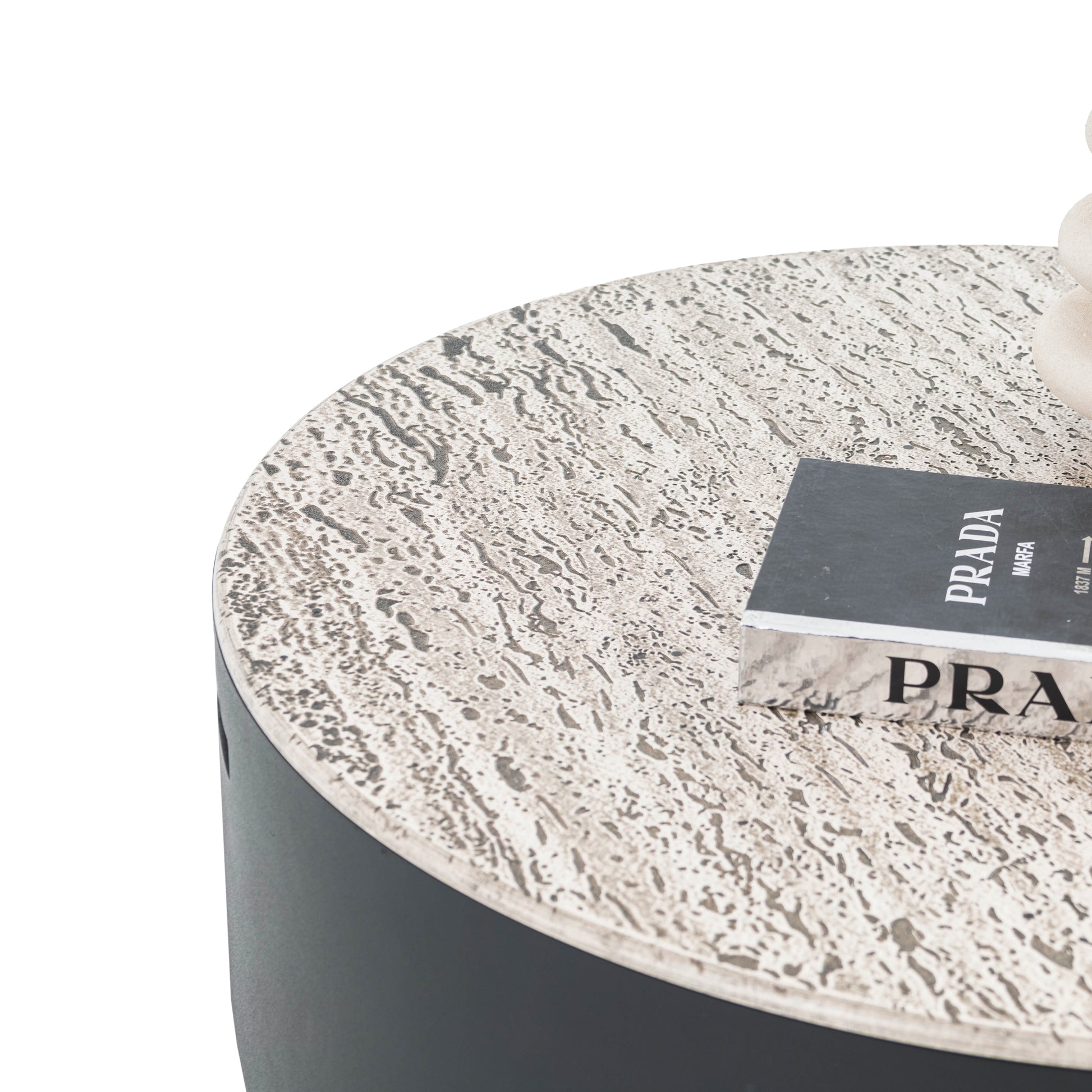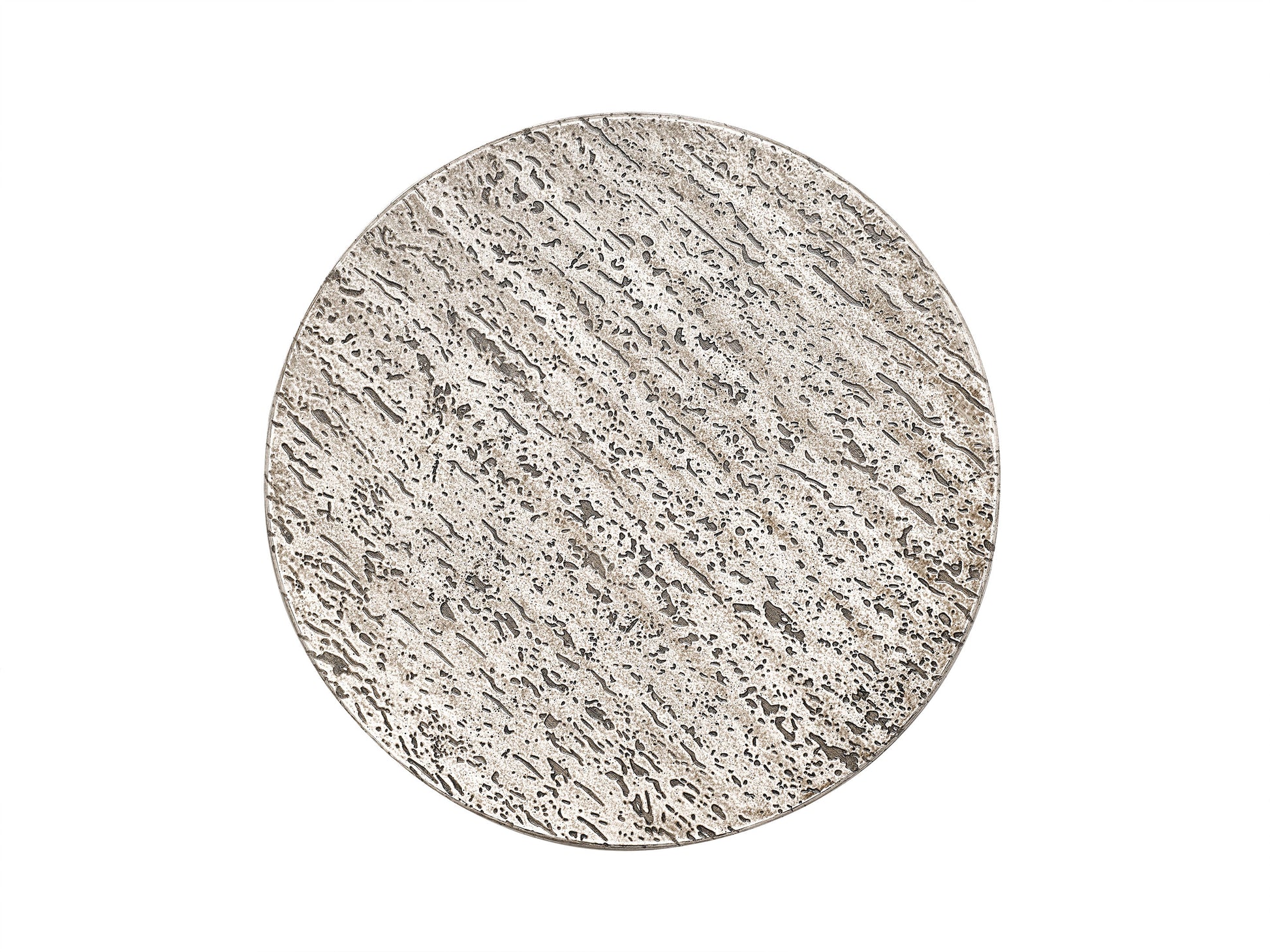 Farb: Schwarz – helle, graubeige Travertinplatte.