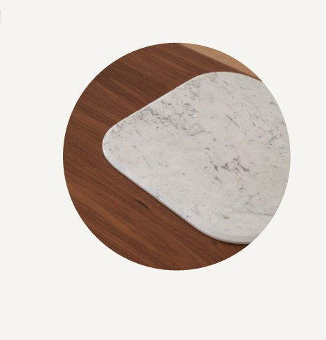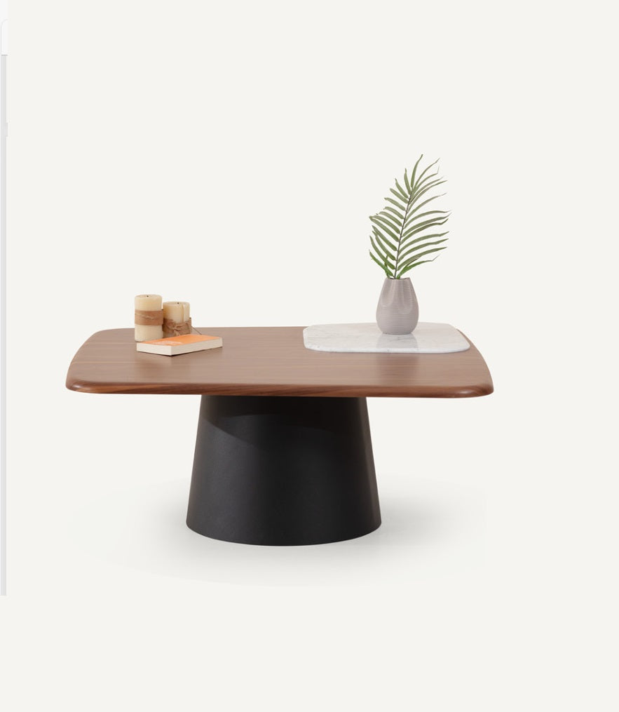 Ein Couchtisch mit skulpturaler Basis und weichen Kanten.