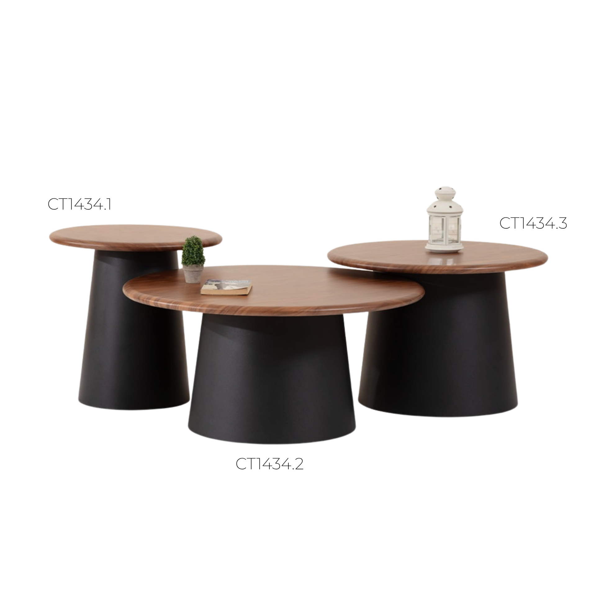 Ein Couchtisch-Set mit skulpturaler Form und harmonischer Farbgebung.