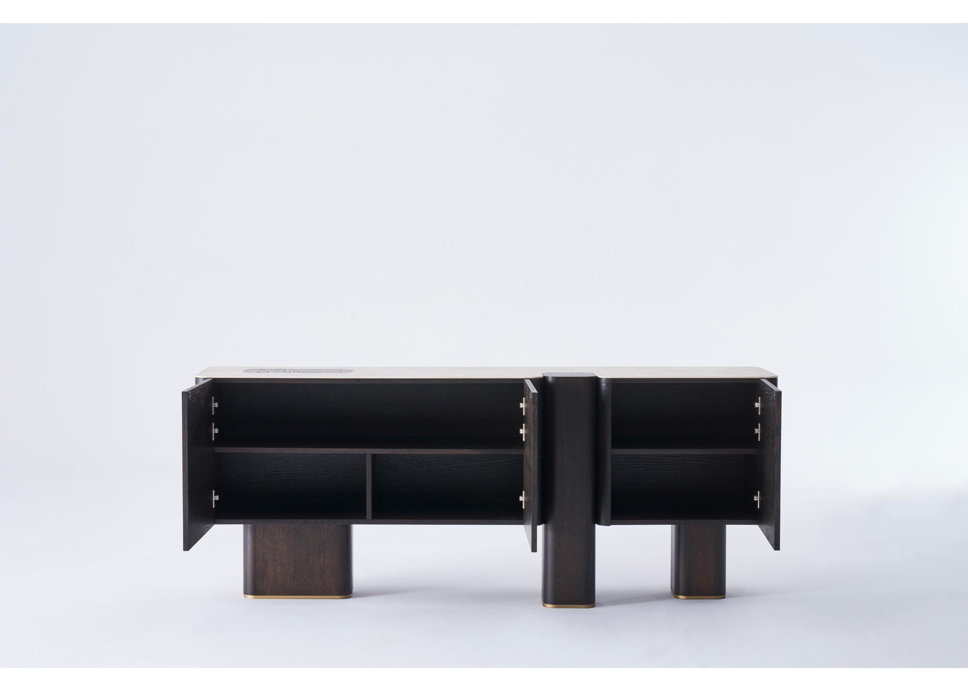 Ein Sideboard mit ausgewogener Geometrie und reduzierter Formensprache. Ideal für moderne Interieurs mit Struktur und Ruhe.