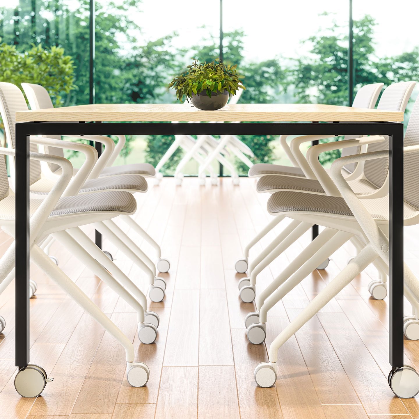 Bürotisch mit Rollen mit klarer, architektonischer Gestaltung. Struktur, Funktion und Präzision stehen im Mittelpunkt. Die ruhige Formensprache unterstreicht Professionalität und Zeitlosigkeit.