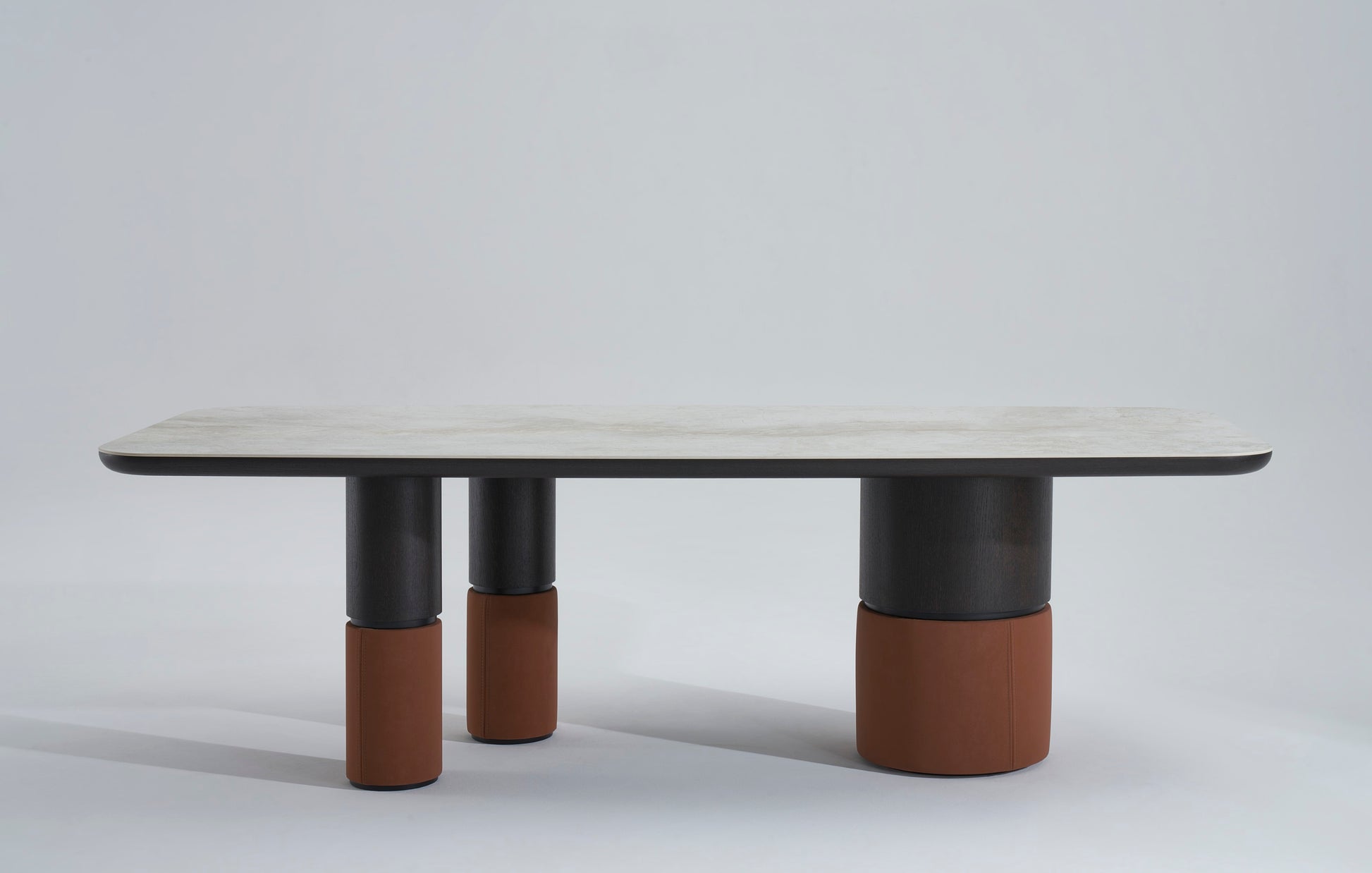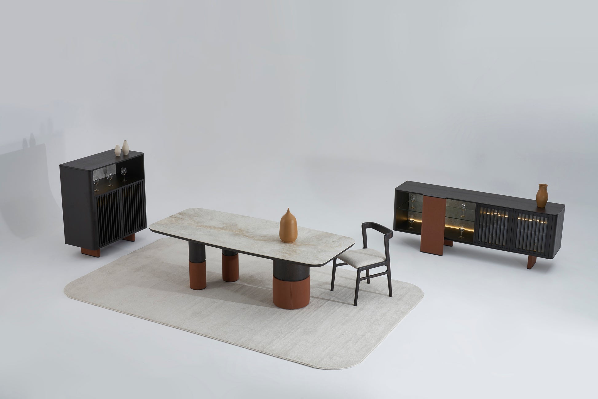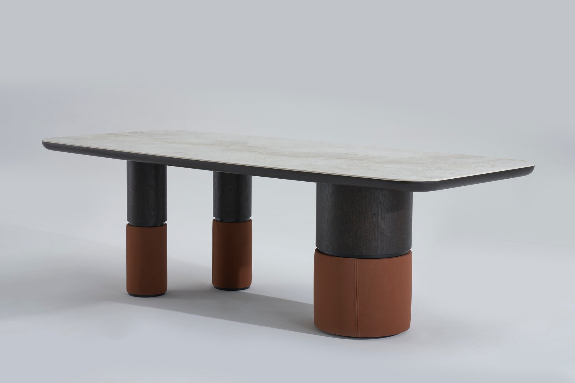 T1202 Esstisch mit Keramikplatte und Lederdetails