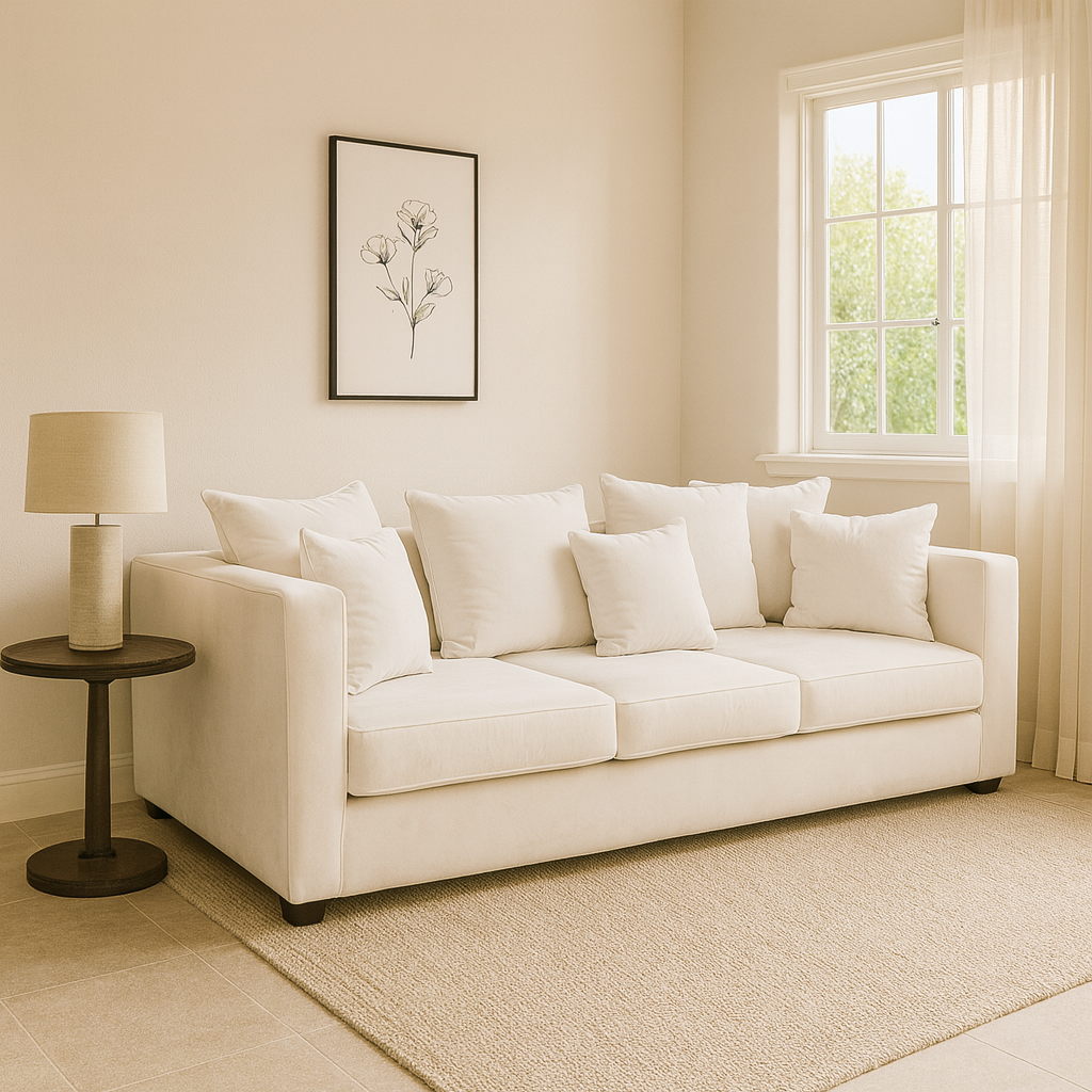 Dieses Sofa besticht durch klare Geometrie und feine Verarbeitung. Es steht für handwerkliche Qualität und zeitloses Design.