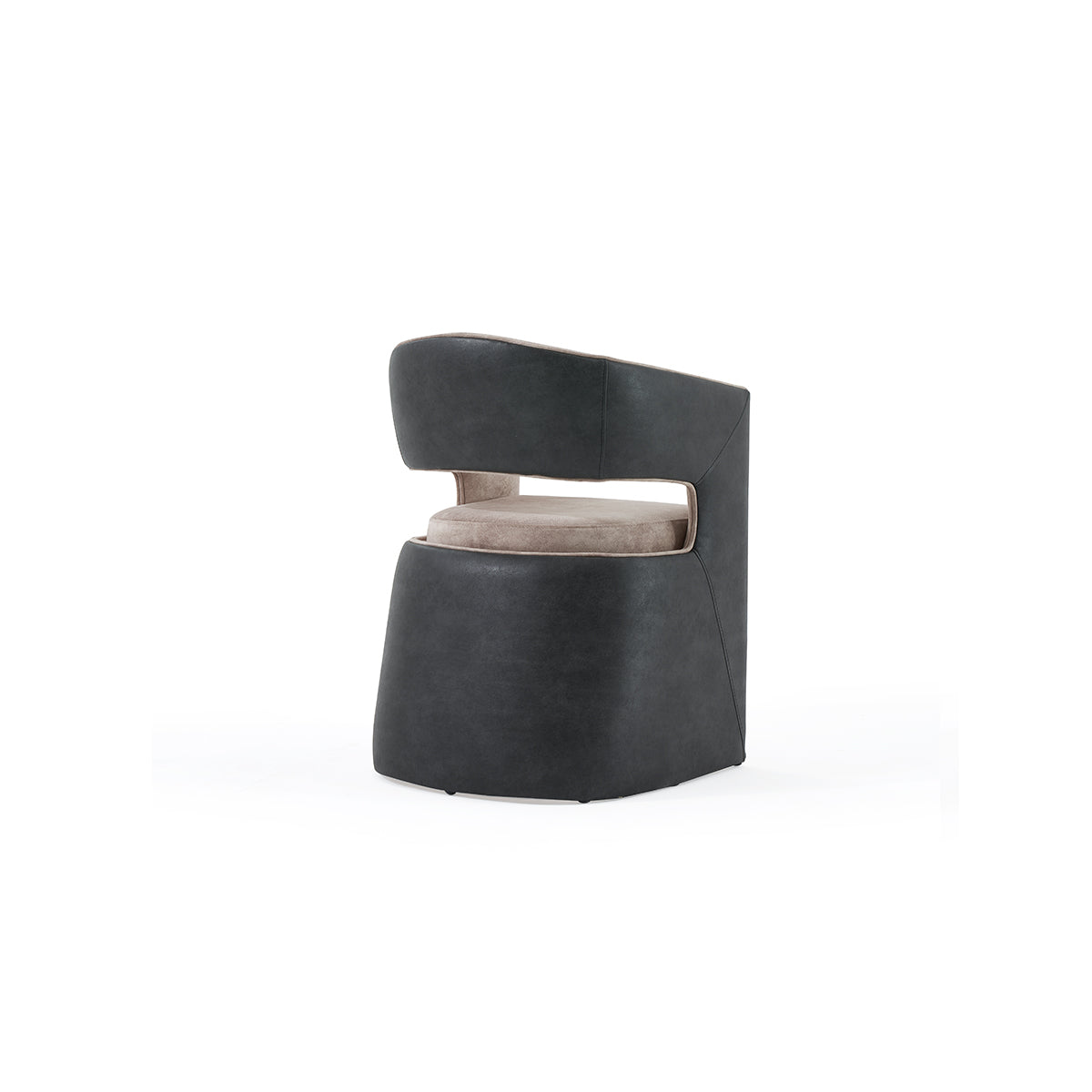 Ein Stuhl mit ruhiger Silhouette und feiner Geometrie. Er unterstreicht die architektonische Ordnung des Raumes.