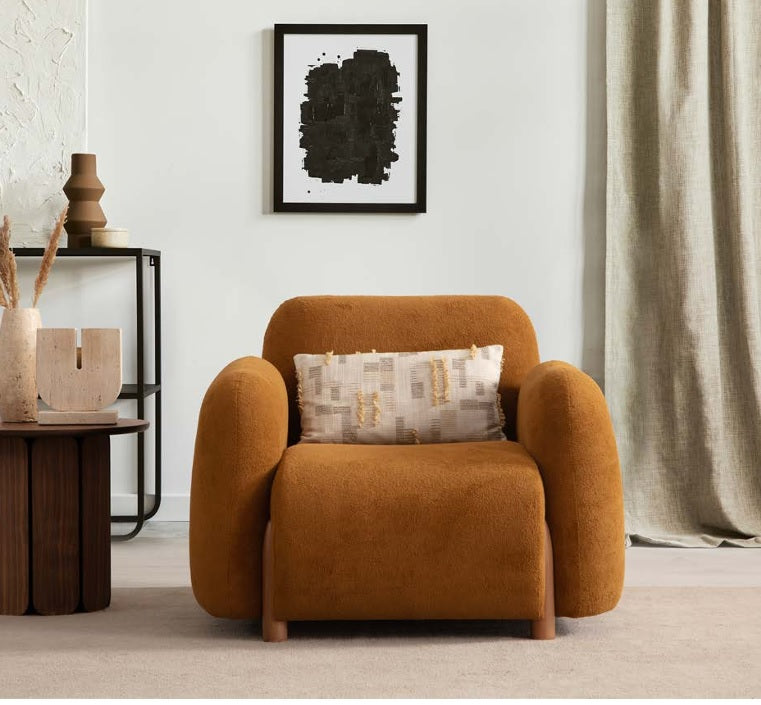 Ein Sessel, der Ruhe, Struktur und Handwerkskunst ausstrahlt. Für Interieurs mit stilvoller Zurückhaltung.