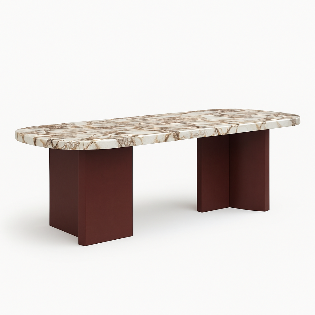 Farbe: Cremefarbener Stein mit braunen Adern, Bordeaux-Füsse