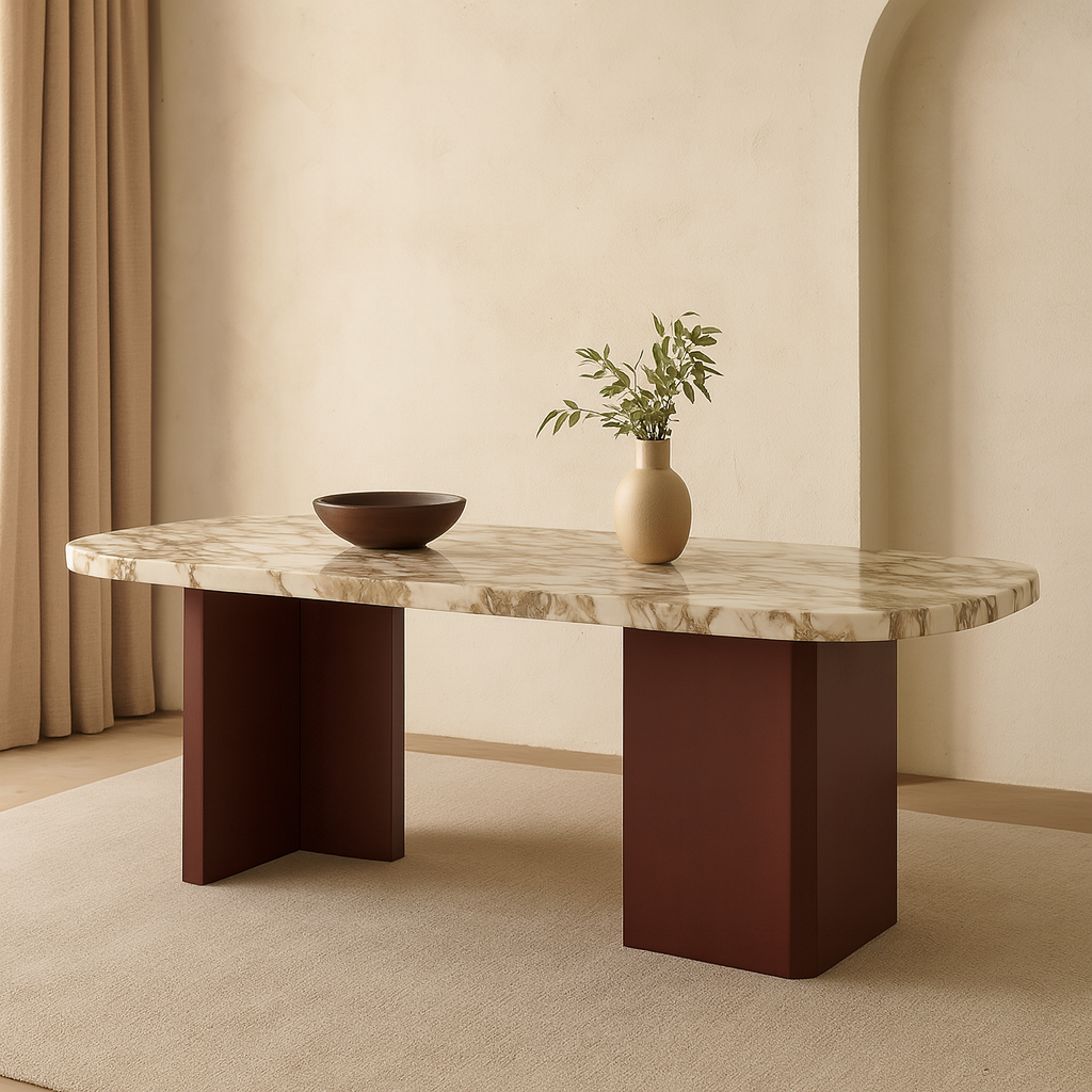 T2037 Esstisch mit Bordeaux-Akzenten