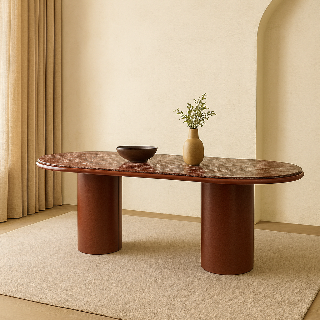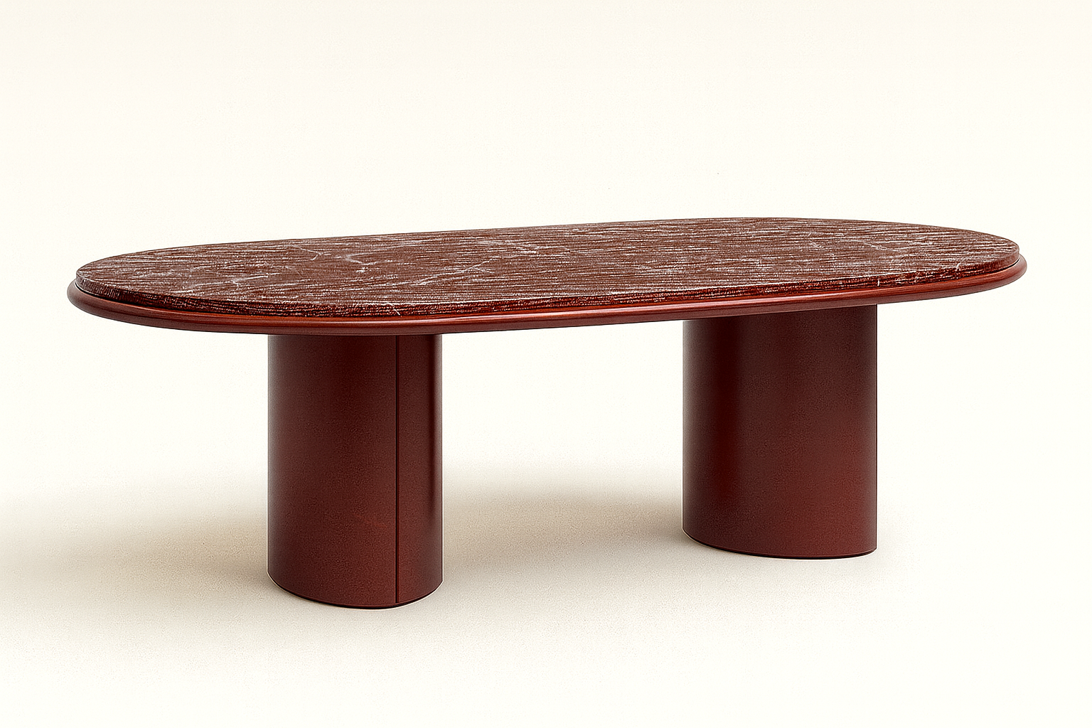 T2038 Esstisch in Dunkelrot mit Steinplatte