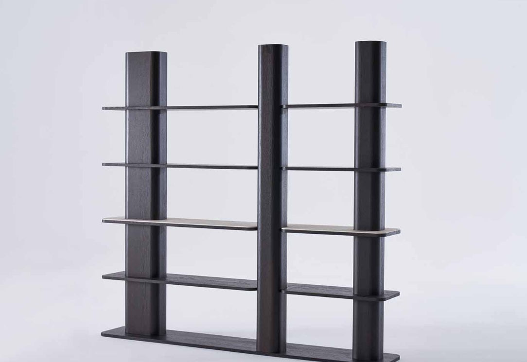Dieser Raumteiler verbindet Struktur und Offenheit. Er zoniert, ohne den Raum zu beschweren. Material: Massive Eiche, matt lackiert